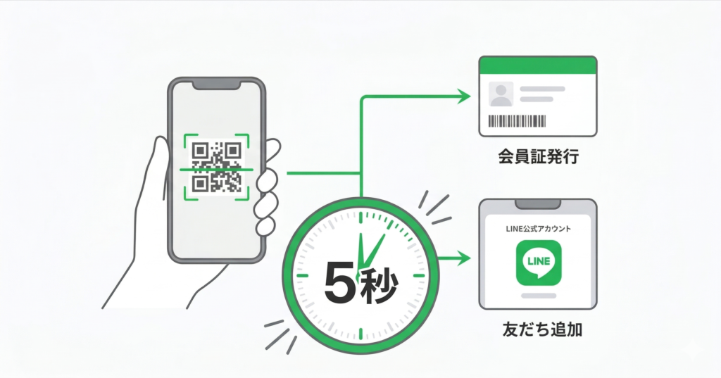 ② たった5秒で会員証発行と同時に「LINE公式アカウントの友だち追加」ができる