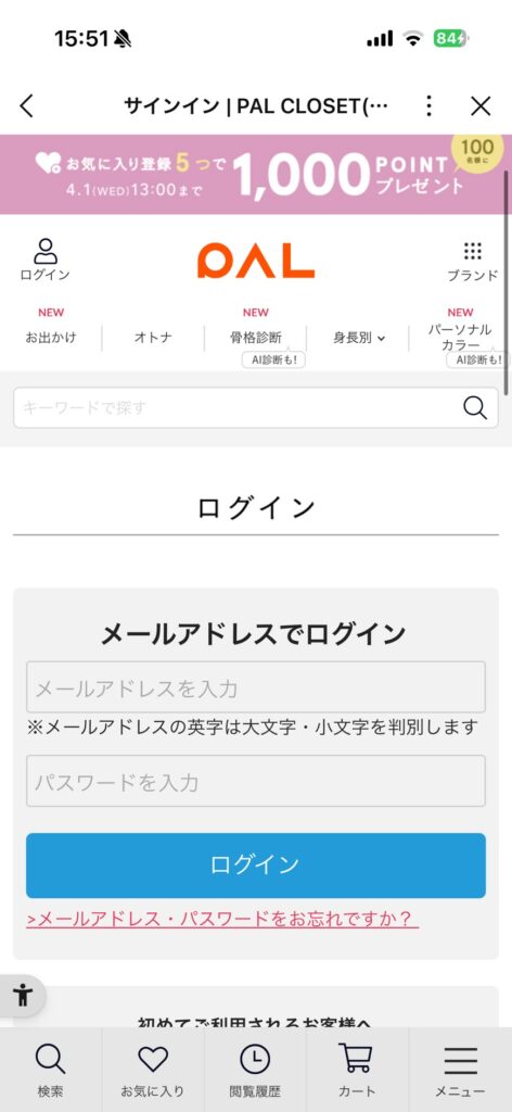 LINEミニアプリのメリットとしてLINEのログイン情報を使うので、会員登録が不要なところですが、パルのアプリでは確かに会員証は素早く表示できるものの、お気に入りした商品などを閲覧するのにも会員登録がミニアプリ内で求められるというところです。