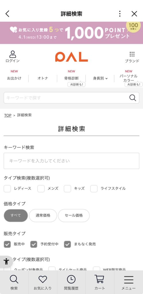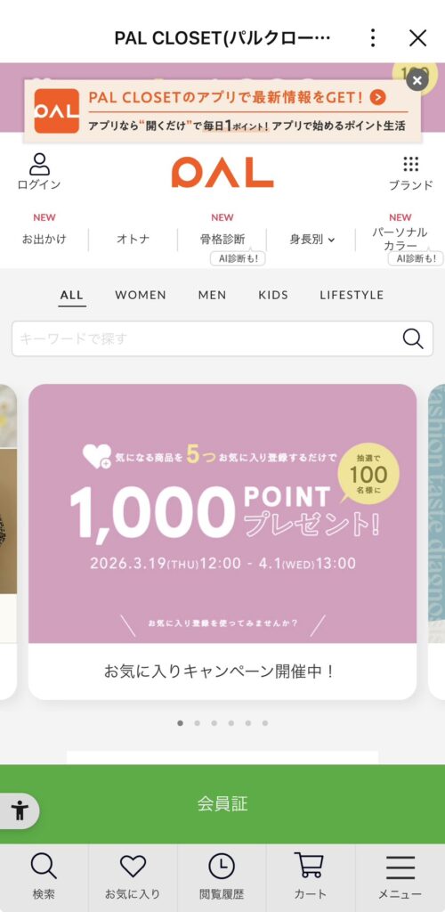 LINEミニアプリのタブからPAL CLOSETを実際に開いてみました。