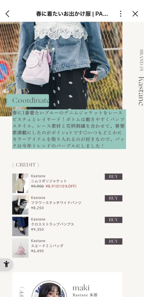 2枚目の画像のように、雑誌と融合した見た目になっており、使われている商品の購入がその場でできるようにもなっています。